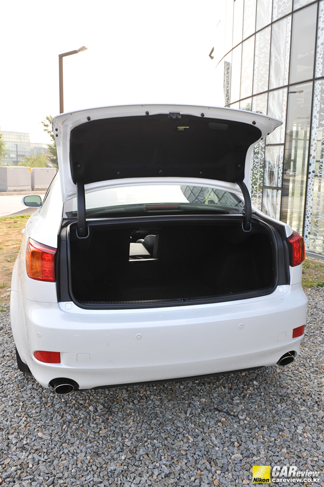 뉴 IS 250의 외관은 범퍼와 사이드 미러가 입체적으로 다듬어졌으며, LED 방향지시등이 사이드 미러에 적용돼 시인성과 향상됐다.