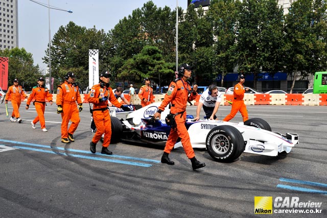 이날 행사에는 BMW 자우버 F1팀의 주전 드라이버인 독일의 닉 하이드펠트가 경주용 차량을 몰면서 가속력 및 고난도 주행 기술 시연을 선보였다.