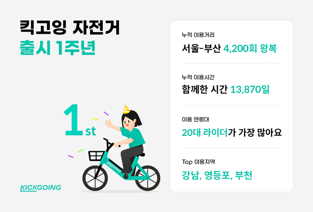 킥고잉을 운영하는 ㈜올룰로가 자전거 서비스 출시 1주년을 맞아 주..